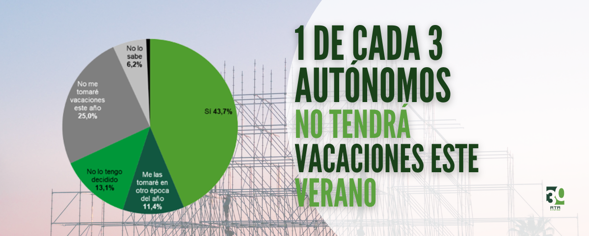 La Federación Nacional de Asociaciones de Trabajadores Autónomos, ATA ha realizado una encuesta a los autónomos para conocer los hábitos del colectivo en vacaciones de verano mostrando que 1 de cada 3 autónomos no tendrán vacaciones este verano.